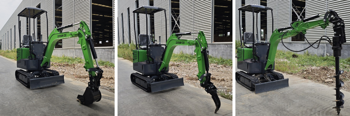 Quick-Connect Attachments: Swaps buckets, breakers, and augers in seconds—no extra tools or professional help needed. This slashes task time (e.g., trenching→demo→planting), solves the pain of low efficiency in multi-task scenarios, lets you take on more daily projects, and lifts both operational efficiency and revenue.